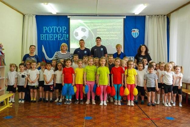 Футболисты «Ротора» Данил Шаталов и Николай Нелюбов посетили детский сам №183 города Волгограда. Игроки продемонстрировали малышам свои навыки и показали основные технические элементы с мячом. Кроме того, футболисты пообщались с детьми, ответили на вопросы, а также наградили призёров районных соревнований «Играй и двигайся». Дети в свою очередь показали сценку, подарили игрокам поделки и рисунки, а также пожелали им успехов в ближайших матчах.